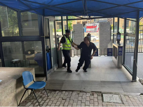 1名形迹可疑的男子突然闯到校园门口,随身携带管制刀具威胁员工安全,在门口大声叫嚣。