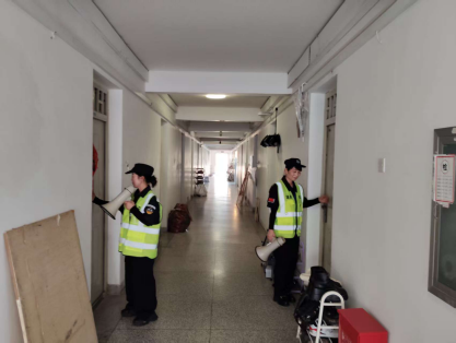 2、模拟三栋学生公寓1楼发生火情进行快反练习: